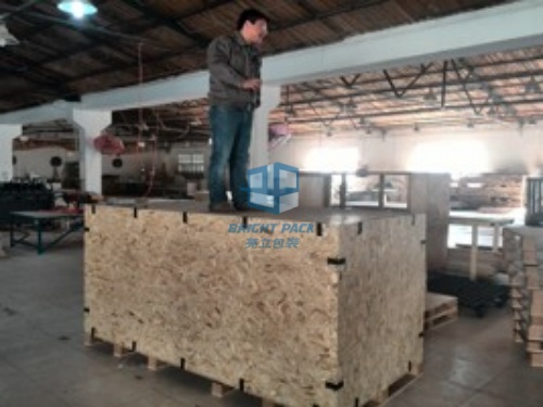 亮立卡扣式木包装箱全部采用高强度OSB板,箱体由高强度的金属制件连接而成,其原理是箱体整体受力,无论是组装还是运输,都不会出现松动现象,同时避免漏钉、露钉、少钉、工艺租髓、灰尘、雨淋、结构处理不当、运输途中箱体碰撞造成的散架等问题;保障了产品的安全性,保证了客户收货时的完整性,同时由于是无钉化作业,确保了现场包装人员的零事故。同时我们通过了ISTA(囯际安全运输协会)压力测试、橦击测法,振动测陆、跌落测试、防潮测试等等一系列严格的测法,达到国际产品运输和包装安全标准,同材质条件下,亮立把箱件能全面超过传统木箱。