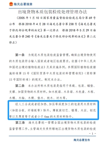 * The following articles are of sufficiently low risk to be exempted from theprovisions of this [ISPM-15] standard: -wood packaging made wholly of processedwood material, such as plywood, particle board, oriented strand board [OSB] orveneer that has been created using glue, heat or pressure, or a combination thereof.
